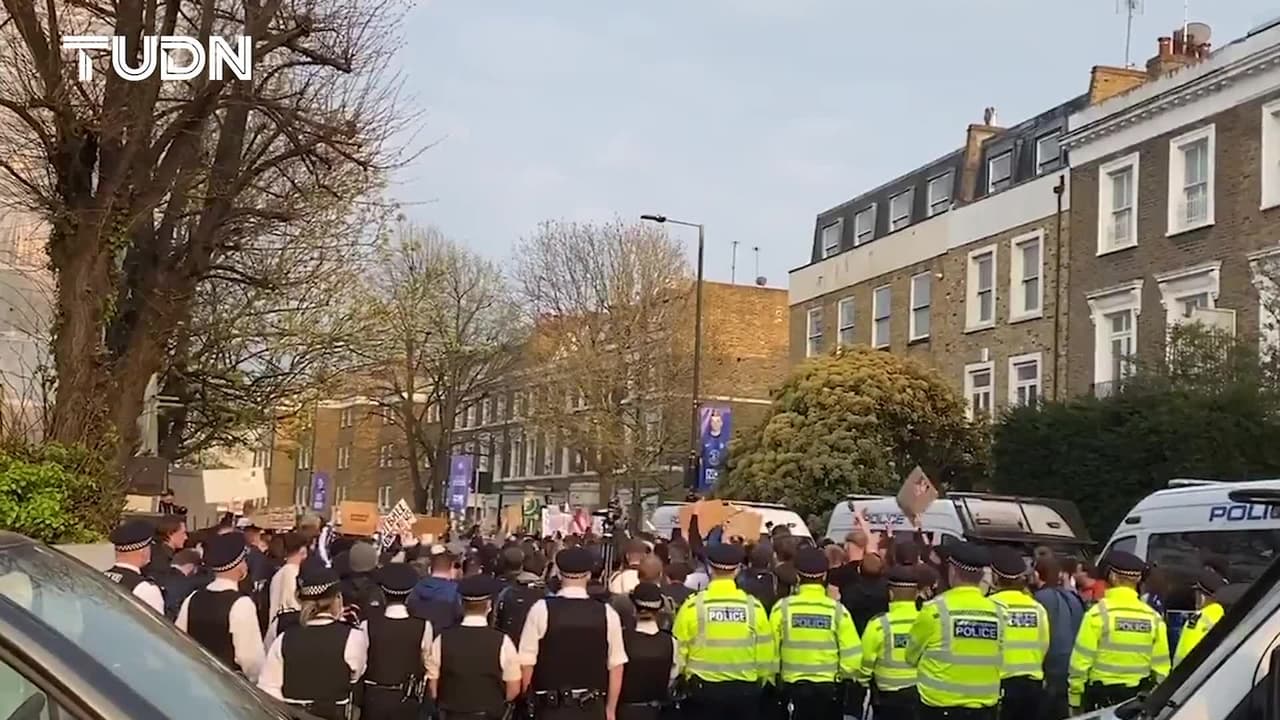 Cientos de aficionados se arremolinaron a las afueras de Stamford Bridge e impidieron por momentos la llegada del equipo al estadio para su compromiso de la Premier League.