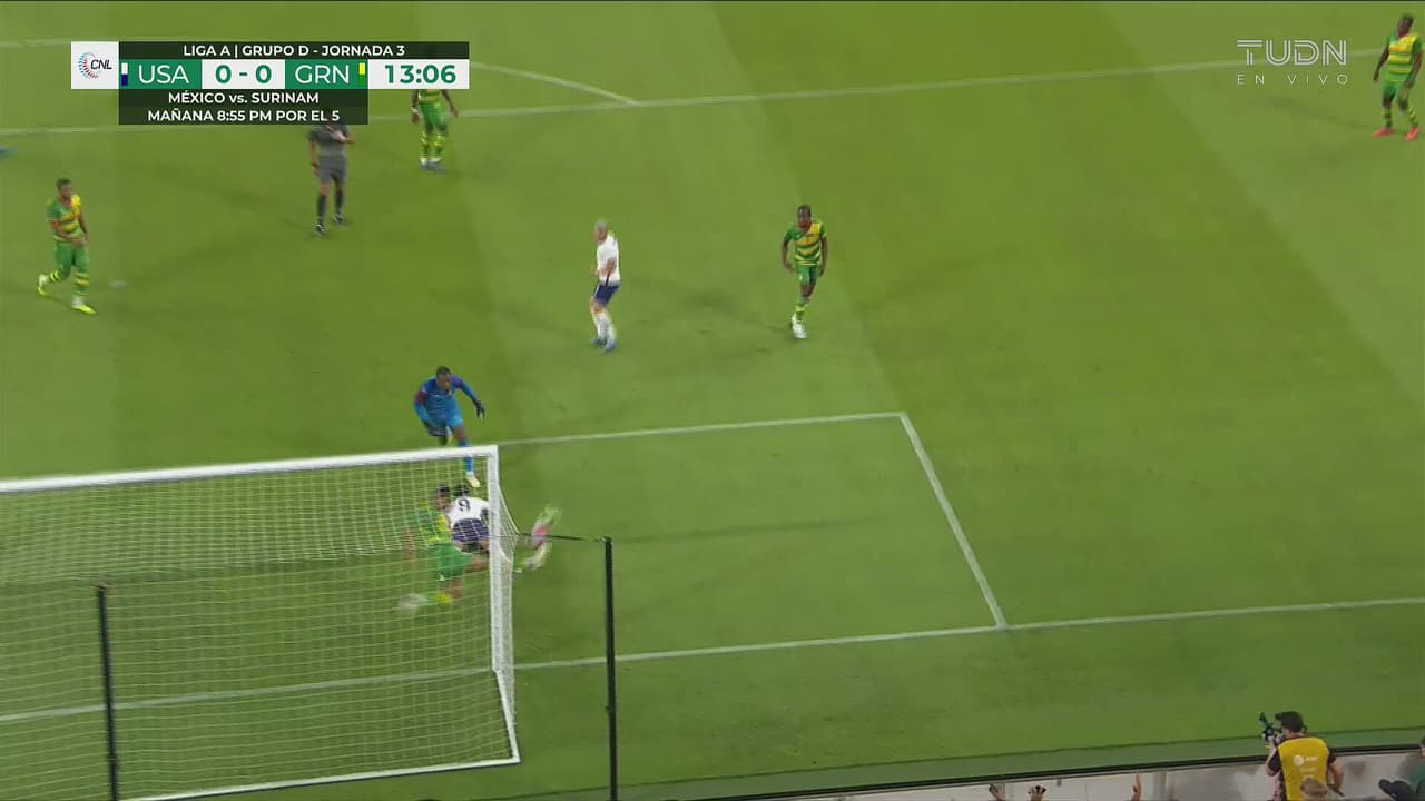 El delantero de Team USA trató de ganarle al guardameta y se lleva un duro golpe, al 13'.