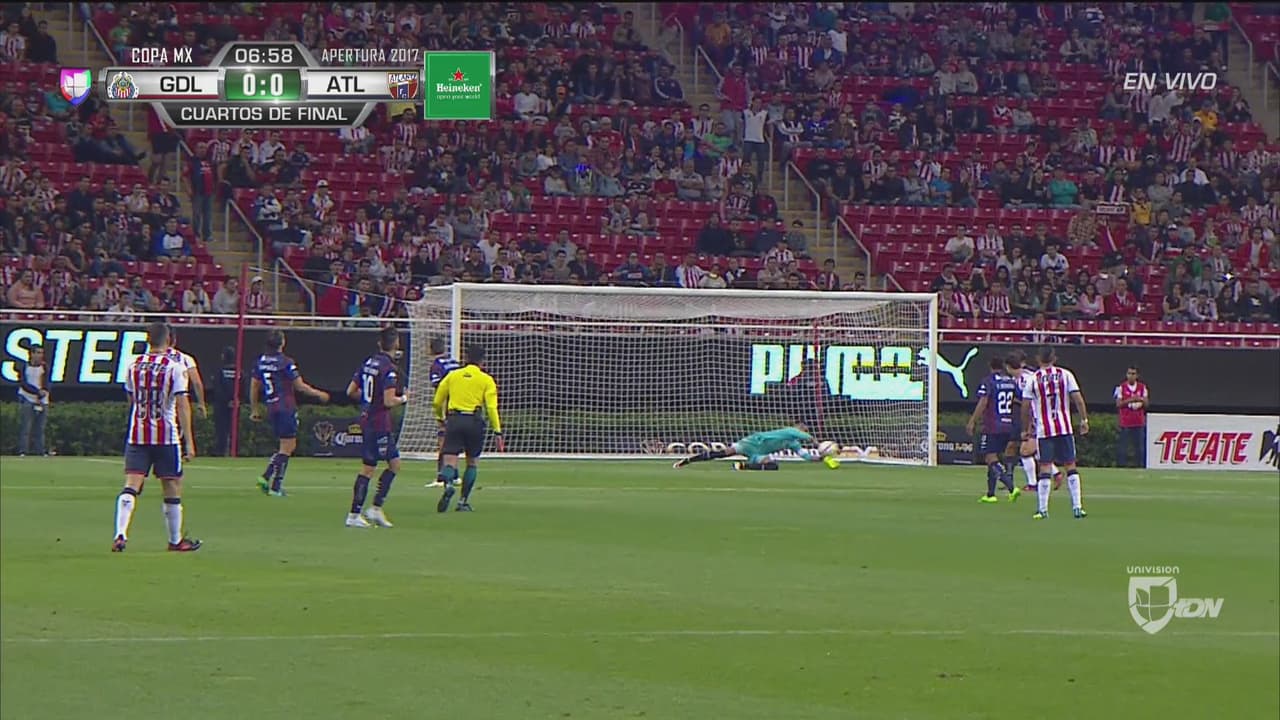 El volante de Chivas apareció para sacar un derechazo y poner a trabajar al portero Gerardo Ruíz con un gran lance.