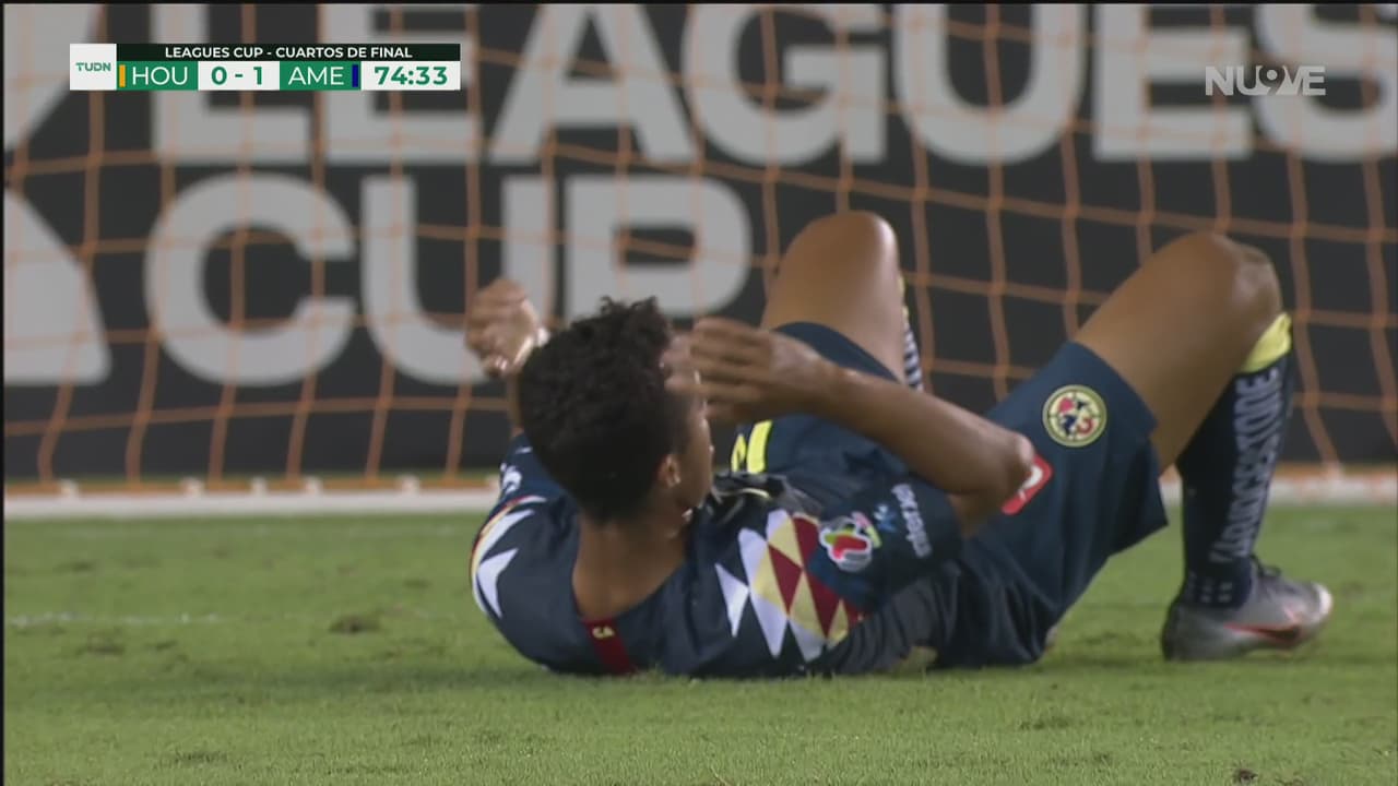 Buena jugada americanista que acabó buscando al ‘10’, quien no le dio dirección al arco a su disparo.