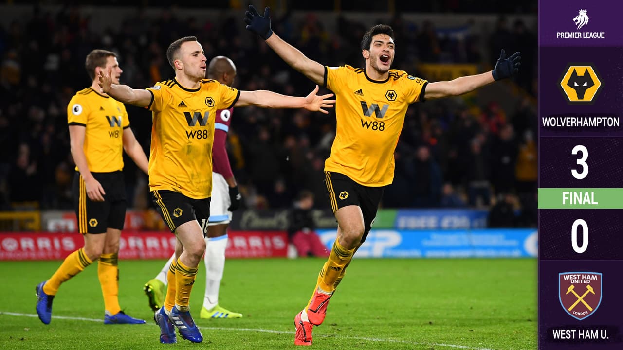 El atacante del Wolverhampton logró un doblete frente al West Ham, que cayó 3-0 en el Molineux Stadium.