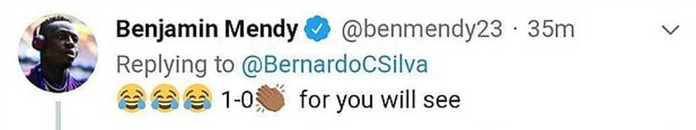 Eso sí, a Mendy no le pareció mal la broma de su Silva e incluso le respondió a su compañero: "1-0 para ti... ahora veremos...".