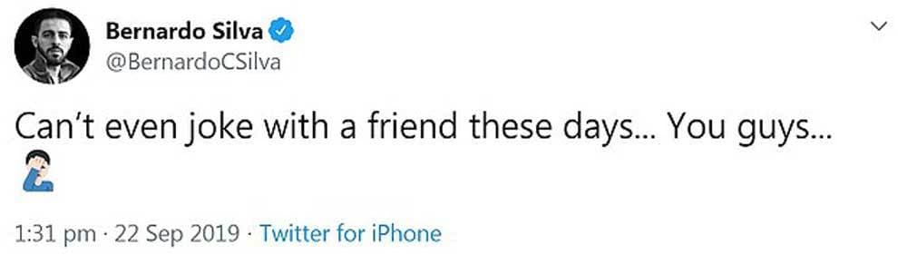 Ante la lluvia de críticas e insultos Bernardo Silva tuvo que borrar el tuit de sus redes: "En estos días ni siquiera puedo bromear con un amigo", afirmó luego el portugués en su misma cuenta de Twitter.