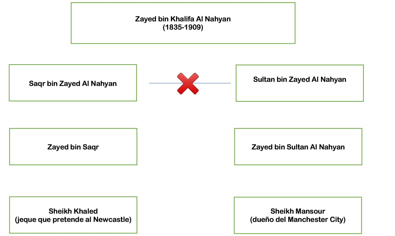 El dueño del Manchester City, Sheikh Mansour, tiene una importancia relevante en el régimen de los Emiratos Árabes Unidos, a tal punto que accede a "dinero familiar" de más de 100 mil millones de libras. Sheikh Khaled, quien pretende al Newcastle, no tiene este mismo acceso económico.