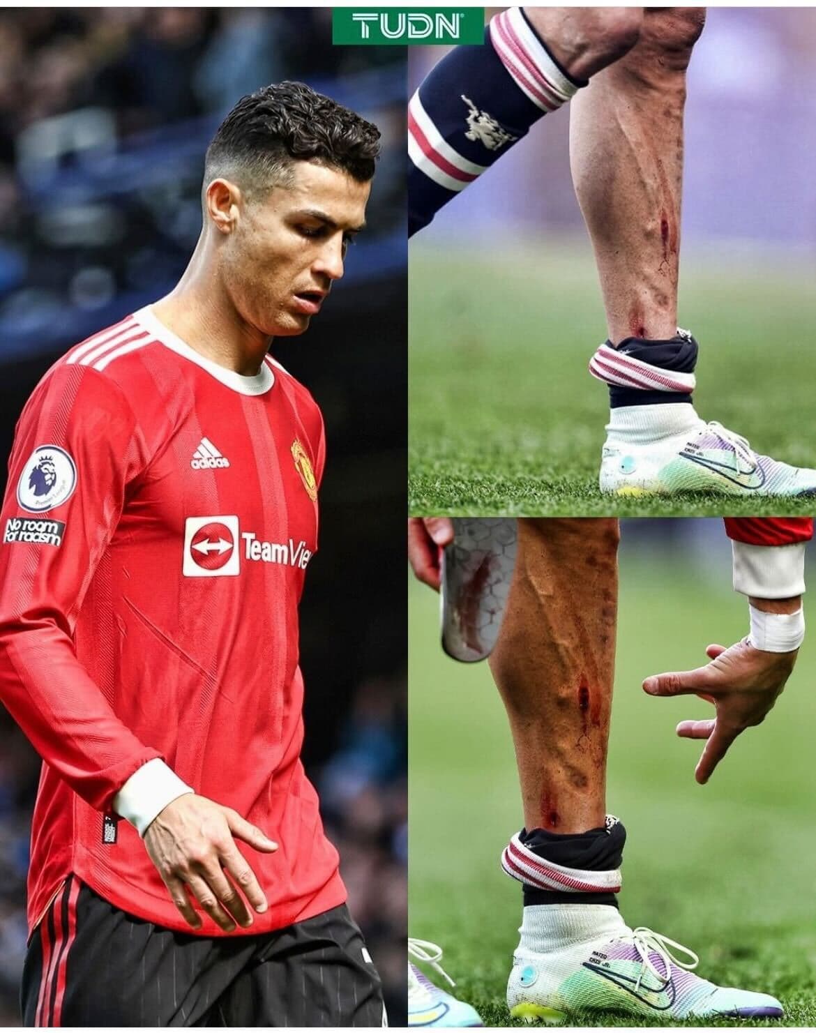 Cristiano Ronaldo muestra piernas con sangre tras perder contra Everton