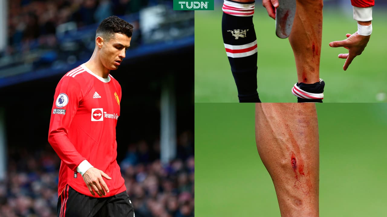 Cristiano Ronaldo terminó con la pierna ensangrentada y tiró el teéfono celular de un aficionado cuando caminaba al vestidor en el Goodison Park, luego de la derrota de l Manchester United sobre el Everton.