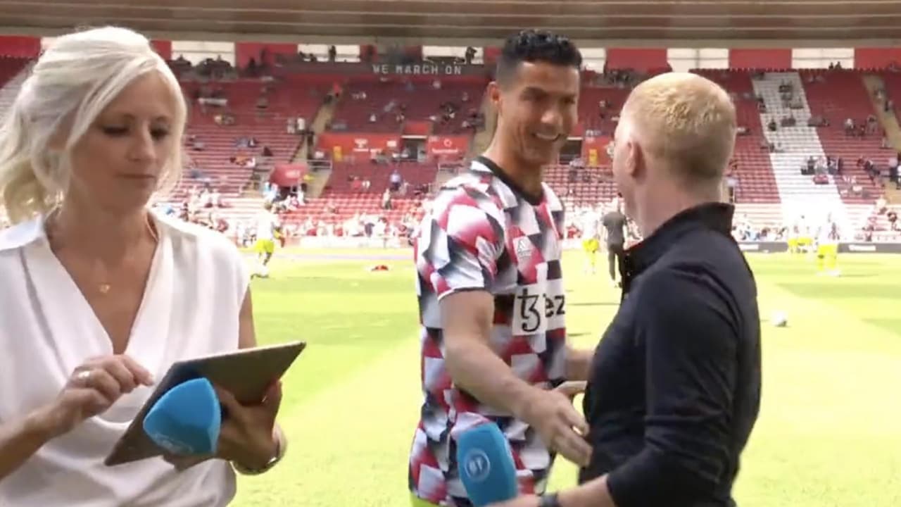 Previo al partido entre Southampton y Manchester United, el crack luso ignoró a otra persona, pues fue a saludar a Rio Ferdinand, Paul Scholes y Peter Crouch, todos exfutbolistas, pero no la comunicadora a Lynsey Hipgrave que estaba junto a ellos.