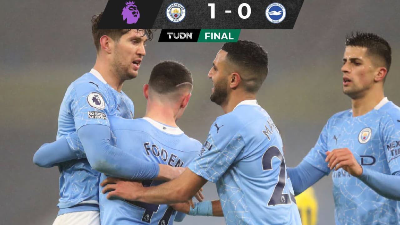 Los de Pep Guardiola vencieron al Brighton con un tanto de Phil Foden y están a cuatro puntos de sus rivales de patio.