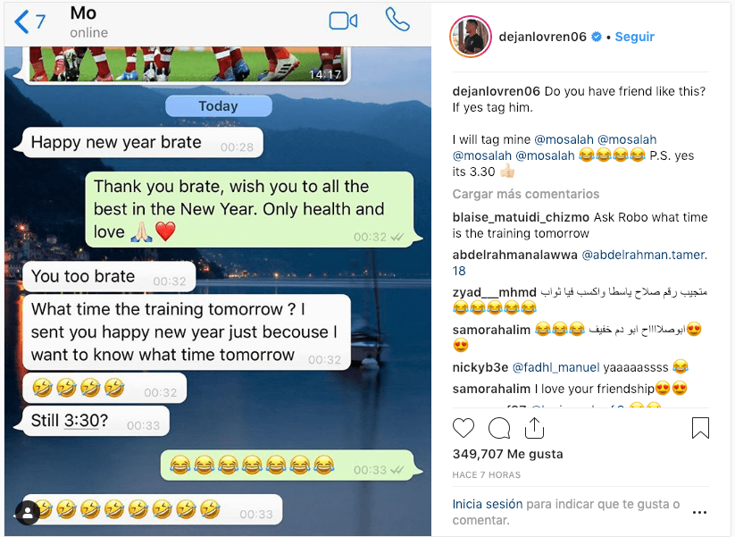 Mohamed Salah recurrió a su picardía para conocer el horario en el que debía presentarse a trabajar y es por ello que le envió un mensaje vía WhatsApp a su compañero Dejan Lovren.