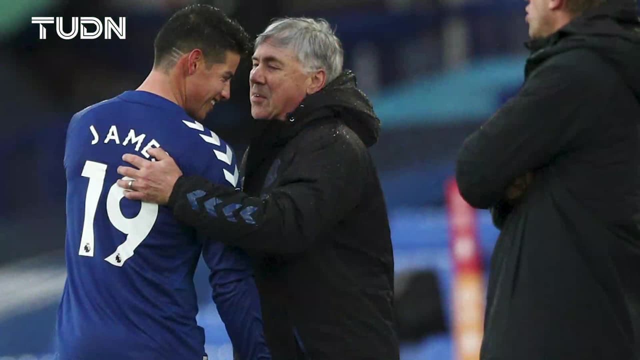 James Rodríguez hizo dos goles con el Everton de Ancelotti
