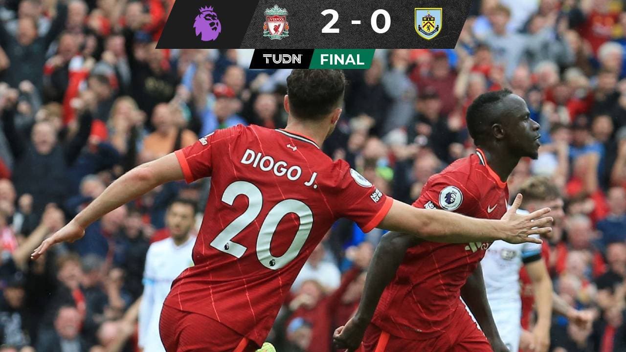El Liverpool sumó su segunda victoria de la temporada en la Premier League al imponerse al Burnley por 2-0 en partido disputado en Anfield con las anotaciones de Diogo Jota y Sadio Mane.