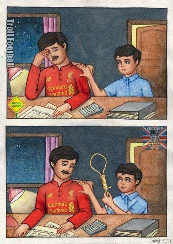 'El nuevo control del Liverpool: échale la culpa al árbitro, habla de tu historia, regala tres puntos, di que "el año que entra sí ganaremos"'.