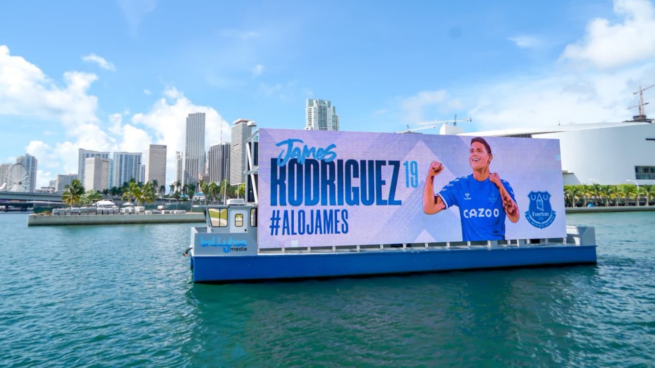 También se vio un cartel gigante en un barco con el anunció del colombiano en las playas de Miami.