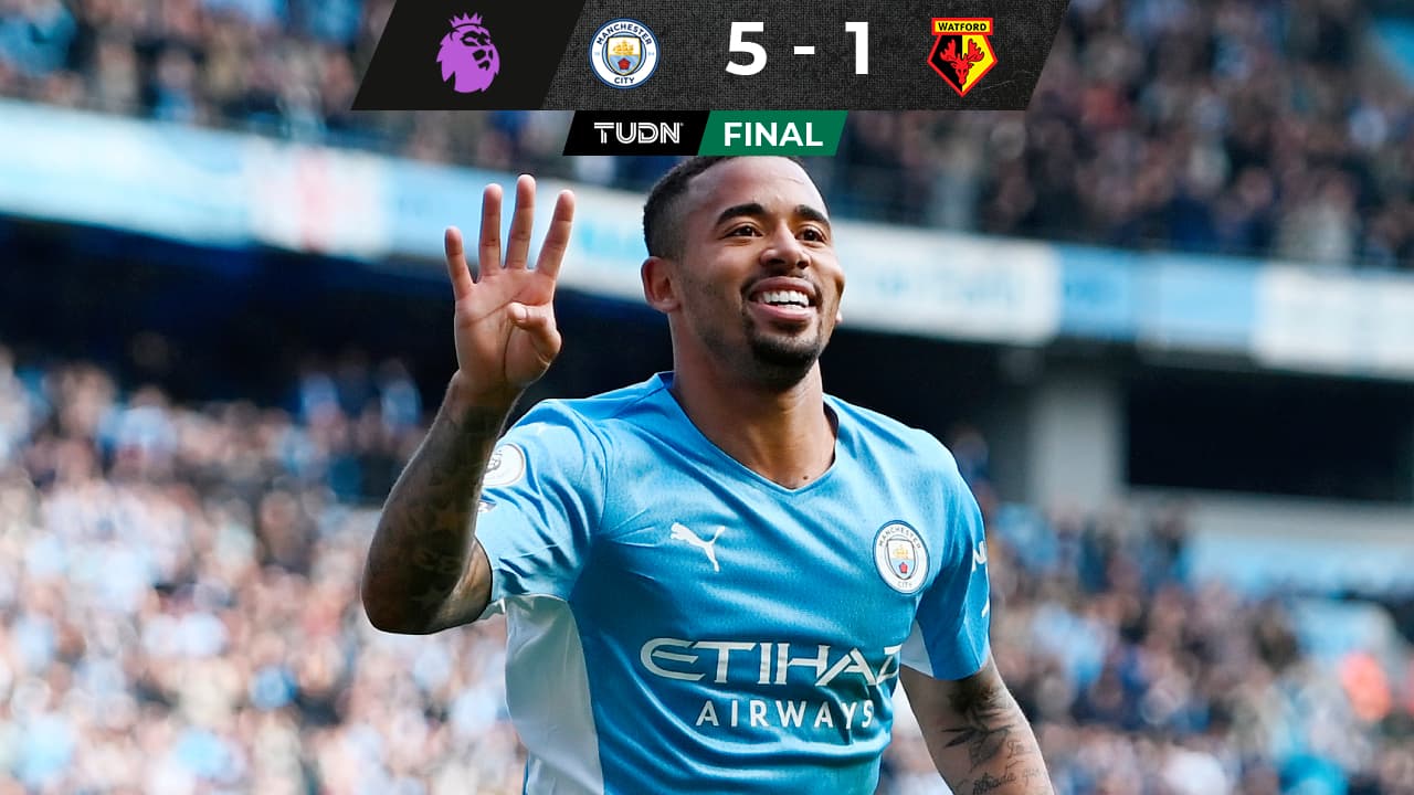 El equipo de Pep Guardiola no tuvo piedad y ganó en el Etihad Stadium con cuatro goles de Gabriel Jesus y otro de Rodri, mientras que Hassane Kamara descontó para el casi descendido Watford.