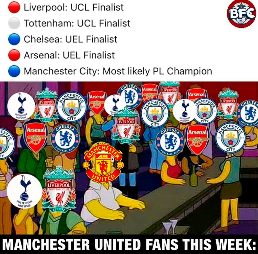 Mientras Liverpool, Tottenham, Arsenal y Chelsea disputan las finales europeas, y el City parece quedarse con la Premier, los Red Devils son blanco de los memes.