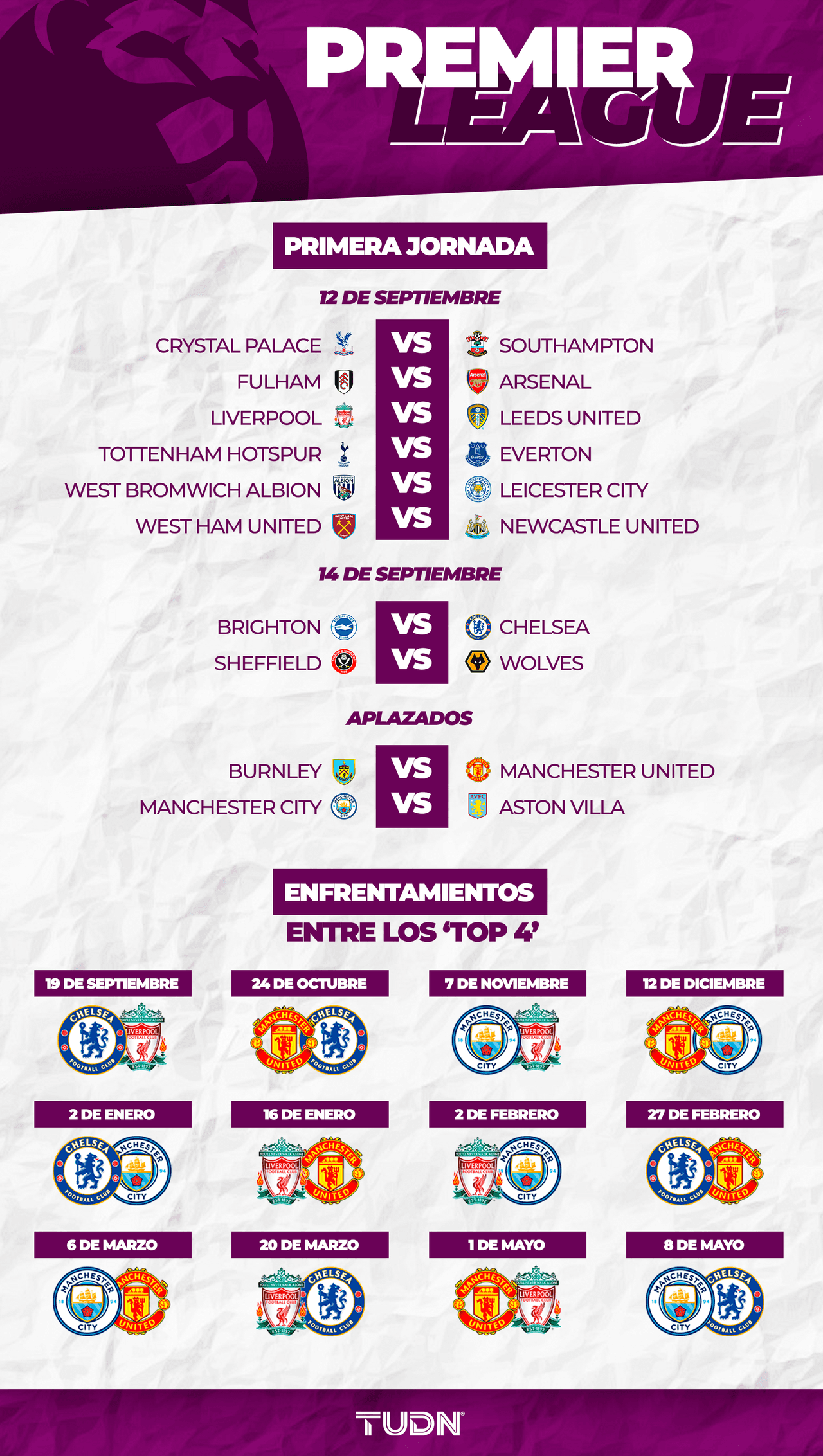 El campeón Liverpool dirigido por Jürgen Klopp comenzará la defensa de su corona el primer día de actividad y le tocará dar la bienvenida al Leeds United, equipo recién ascendido y comandado por el argentino Marcelo Bielsa. Los otros partidos que sobresalen en el día inaugural son Crystal Palace vs Southampton, Fulham vs Arsenal, Tottenham vs Everton y West Bromwich vs Leicester.