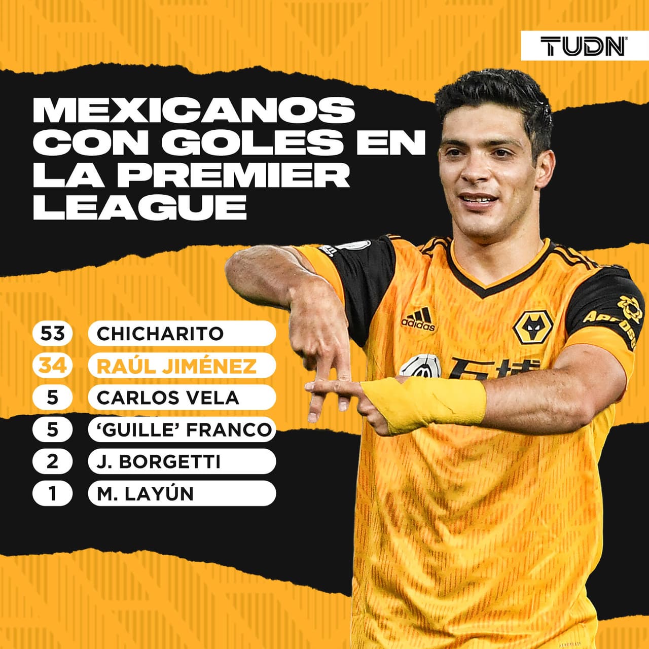 Raúl Jiménez llegó a 34 goles, segunda cifra más alta para un mexicano dentro de la competición isleña, solo superado por Javier 'Chicharito' Hernández, actual jugador del LA Galaxy.