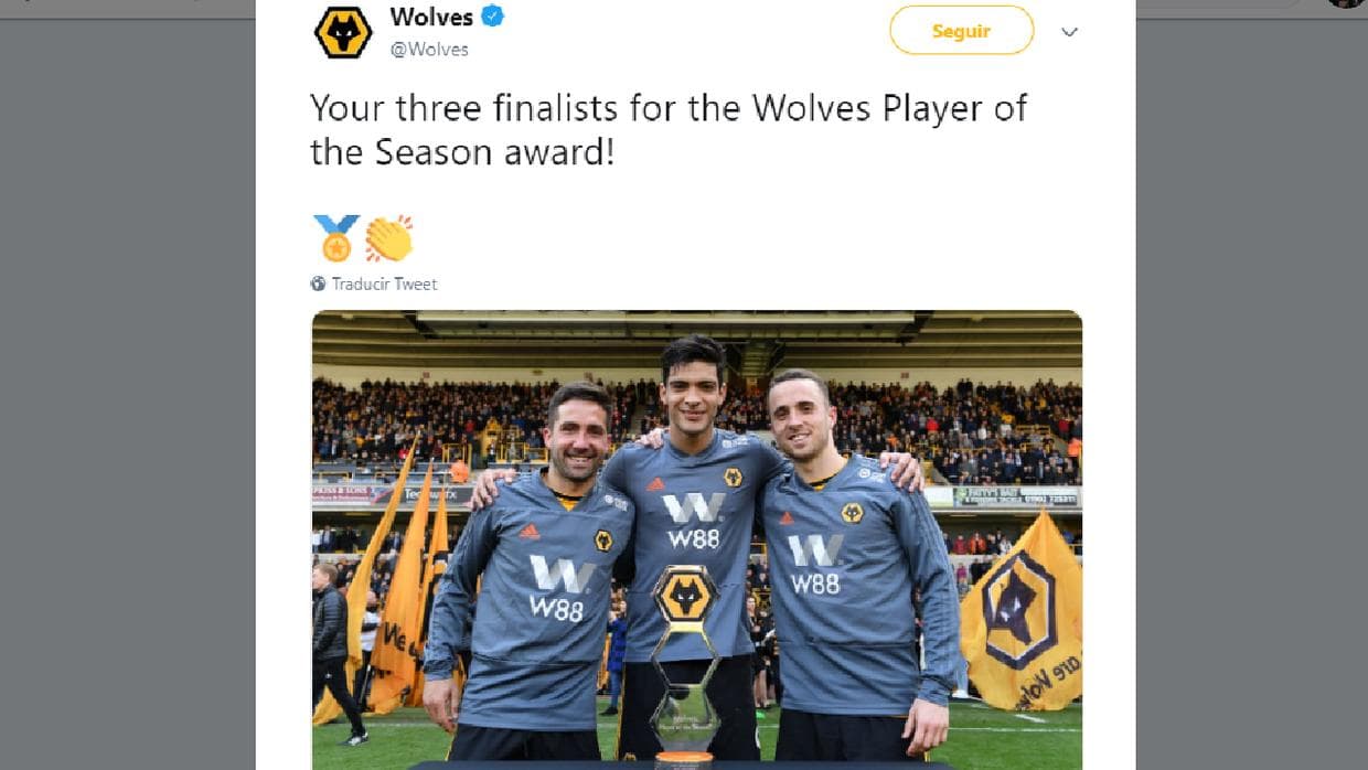 Raúl Jiménez, contra Moutinho y Jota para Jugador del Año del Wolverhampton