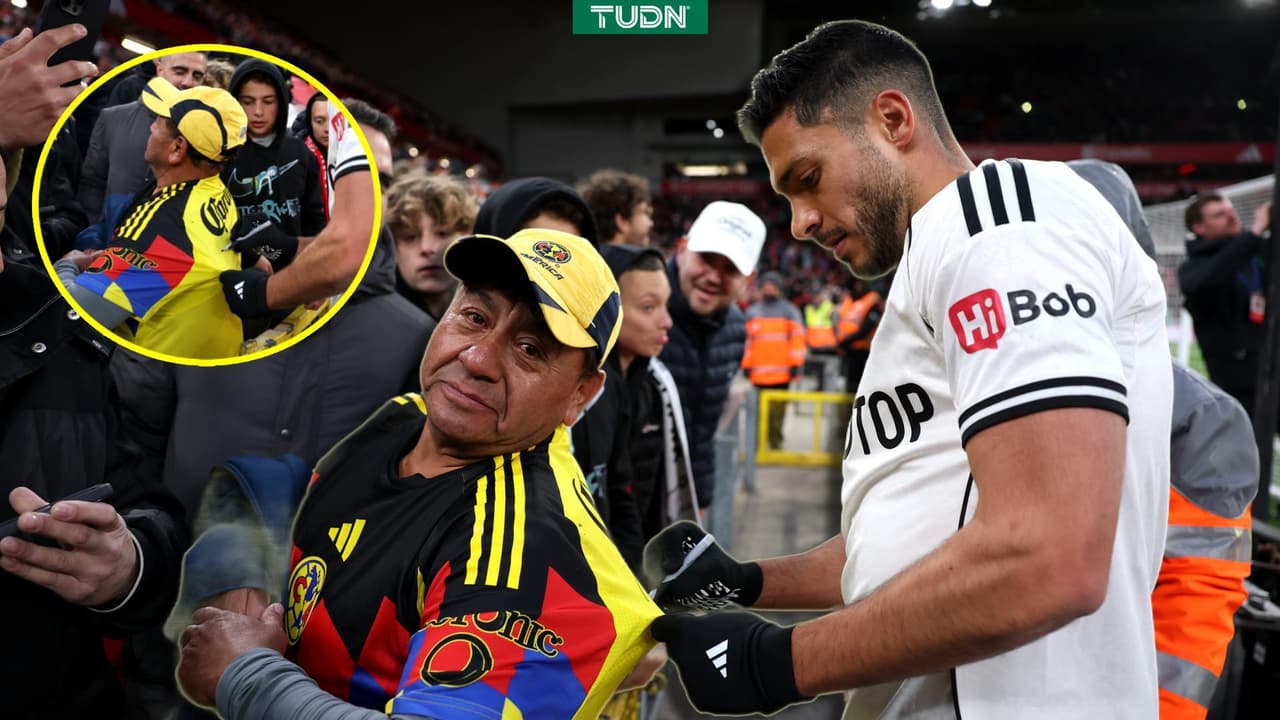 Raúl Jiménez firma playera del Club América en Anfield