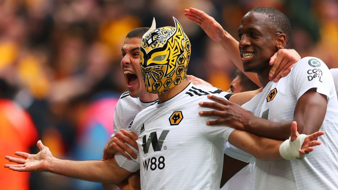 Tanto el delantero del Wolverhampton, como el luchador, intentaron, con la máscara puesta al revés, golpear el palo más largo de una portería.