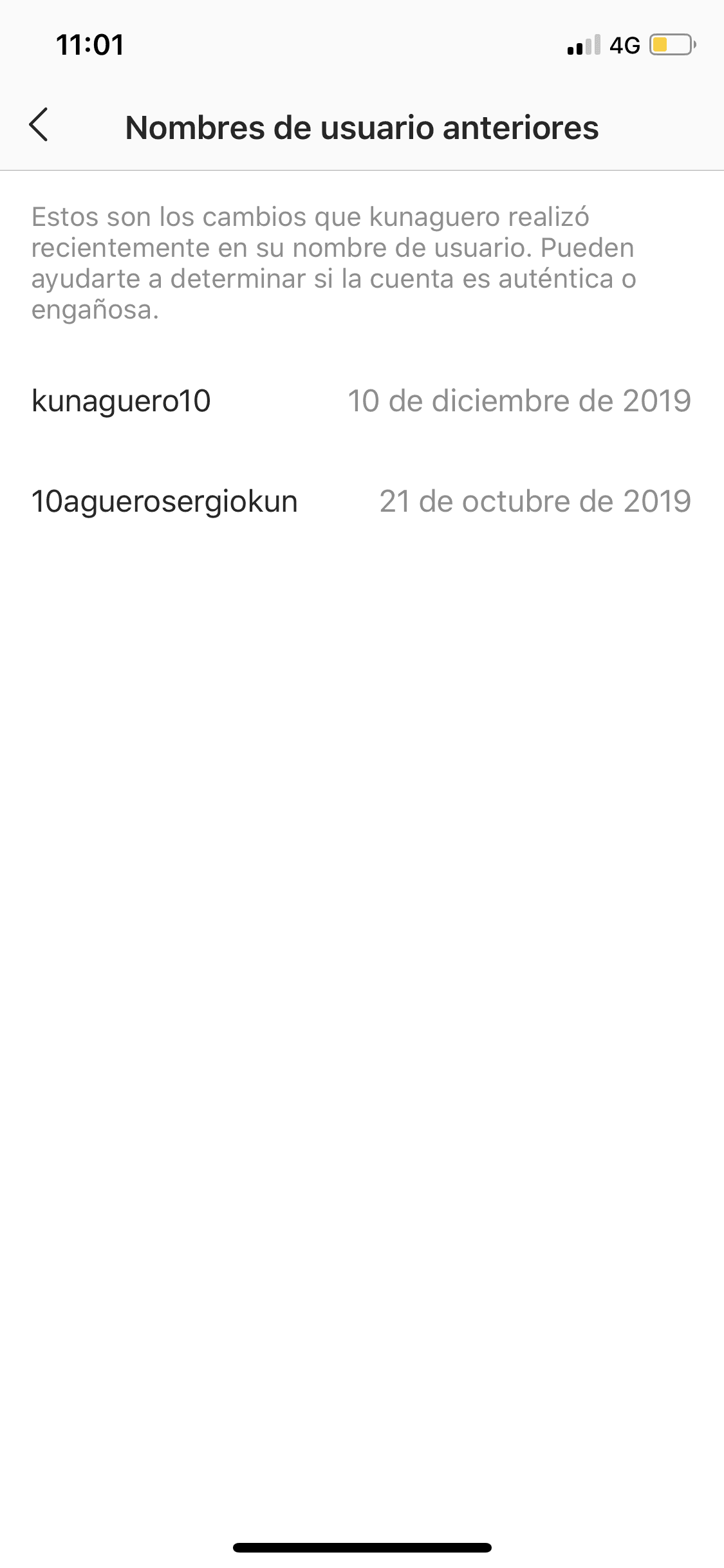 En la siguiente imagen se aprecia las distintas variaciones que ha presentado el nombre de 'Kun' en su perfil de esta red social.