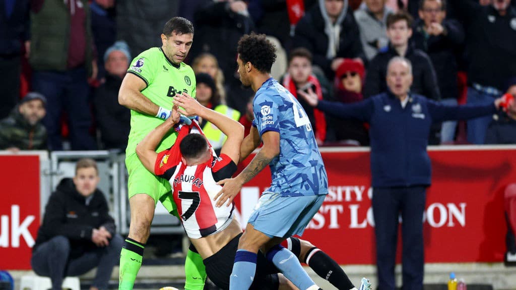 En el último partido de su equipo, el Aston Villa, el ‘Dibu’ volvió a protagonizar una polémica acción en los minutos finales en el choque ante el Brentford, pues tomó al delantero Neal Maupay por la camiseta para levantarlo del suelo mientras se quejaba de una posible falta.