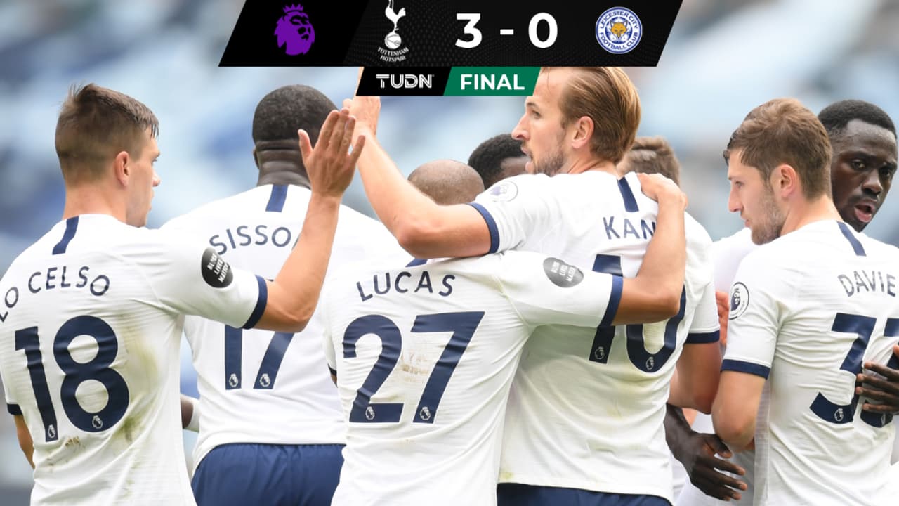 Tottenham goleó 3-0 al Leicester City en la penúltima jornada (36) de la Premier League para superar momentáneamente al Wolverhampton en el sexto lugar, mismo que da el último boleto a UEFA Europa League.