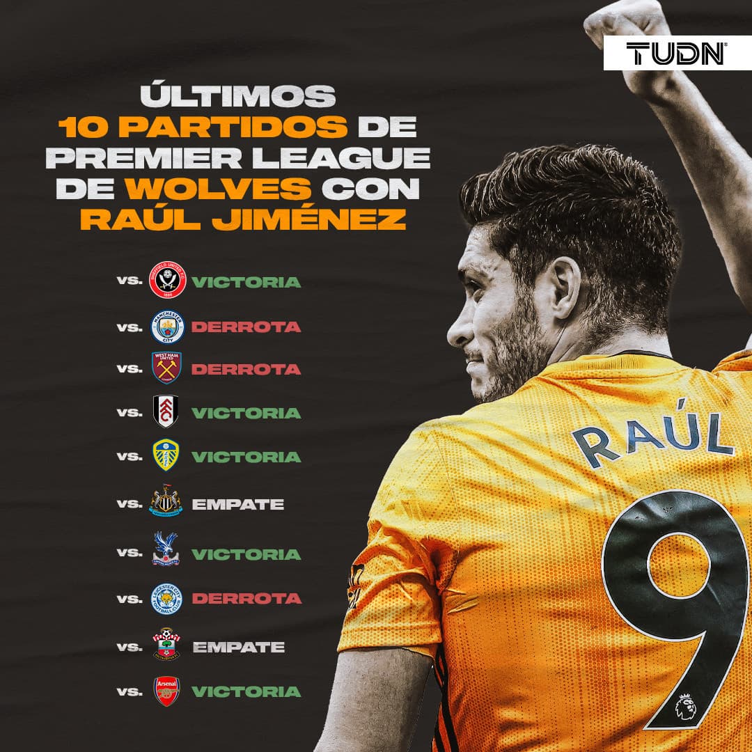 La ausencia de Raúl Jiménez en la cancha ha traído serios problemas a Wolverhampton en funcionamiento y resultados, pues de 10 encuentros disputados en Premier League han perdido seis, empatado tres y sola una victoria.