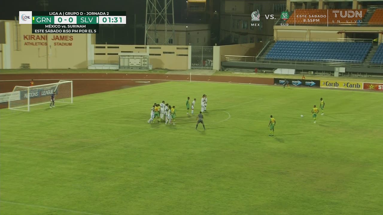 Granada fue el primero en avisar al rival con el tiro libre sobre la meta de El Salvador al minuto uno.