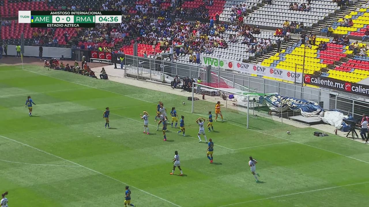 Cobro de esquina por parte de Real Madrid Femenil que llevaba dirección de gol, pero solo se quedó en acercamiento.