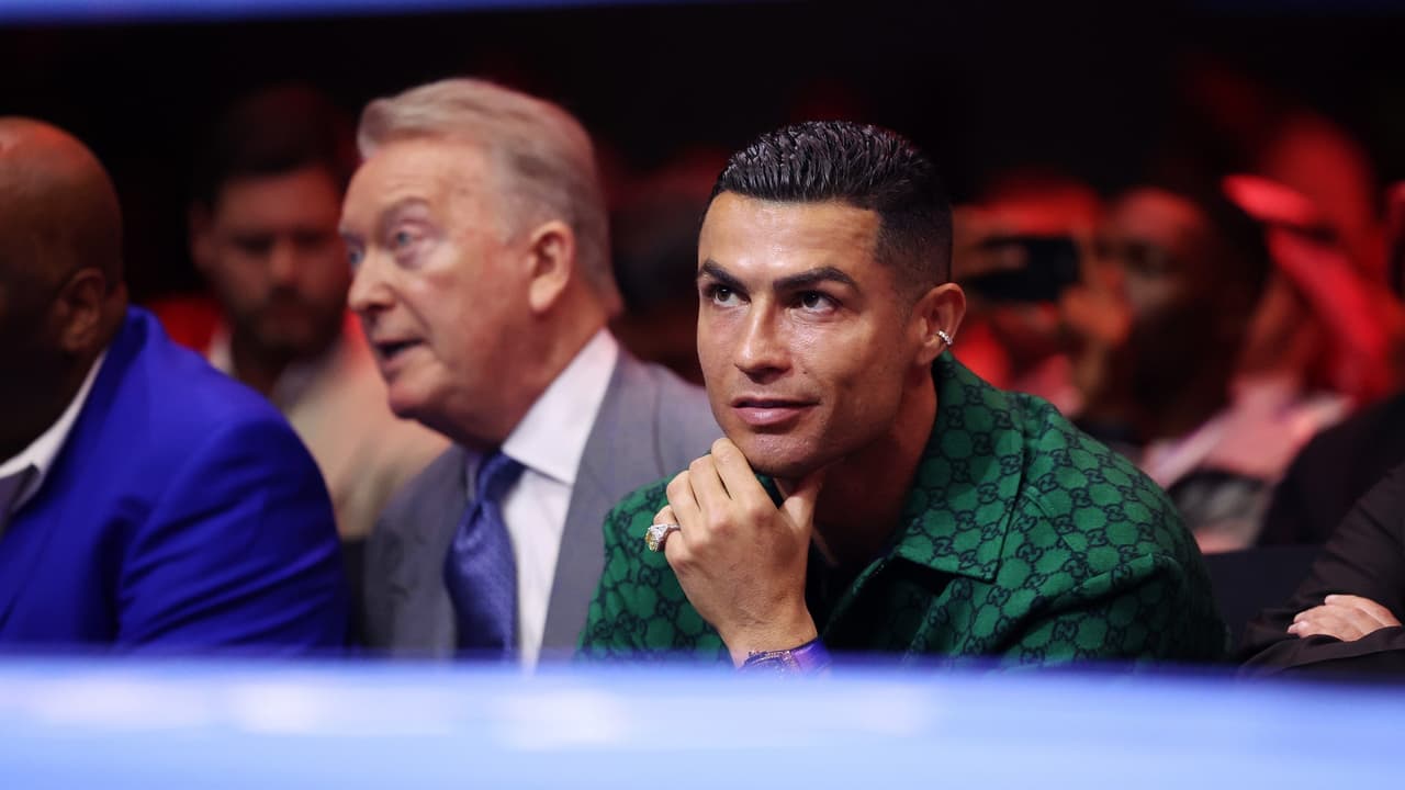 El astro portugués vive momento curioso junto a promotor en gala de boxeo en Arabia Saudita.