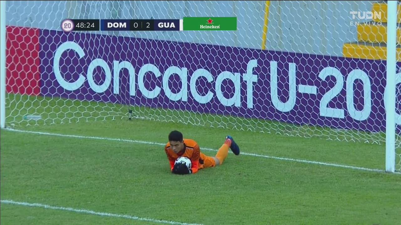 El portero guatemalteco atajó el disparo de Guillermo que buscaba acercar a dominicana al 49’.