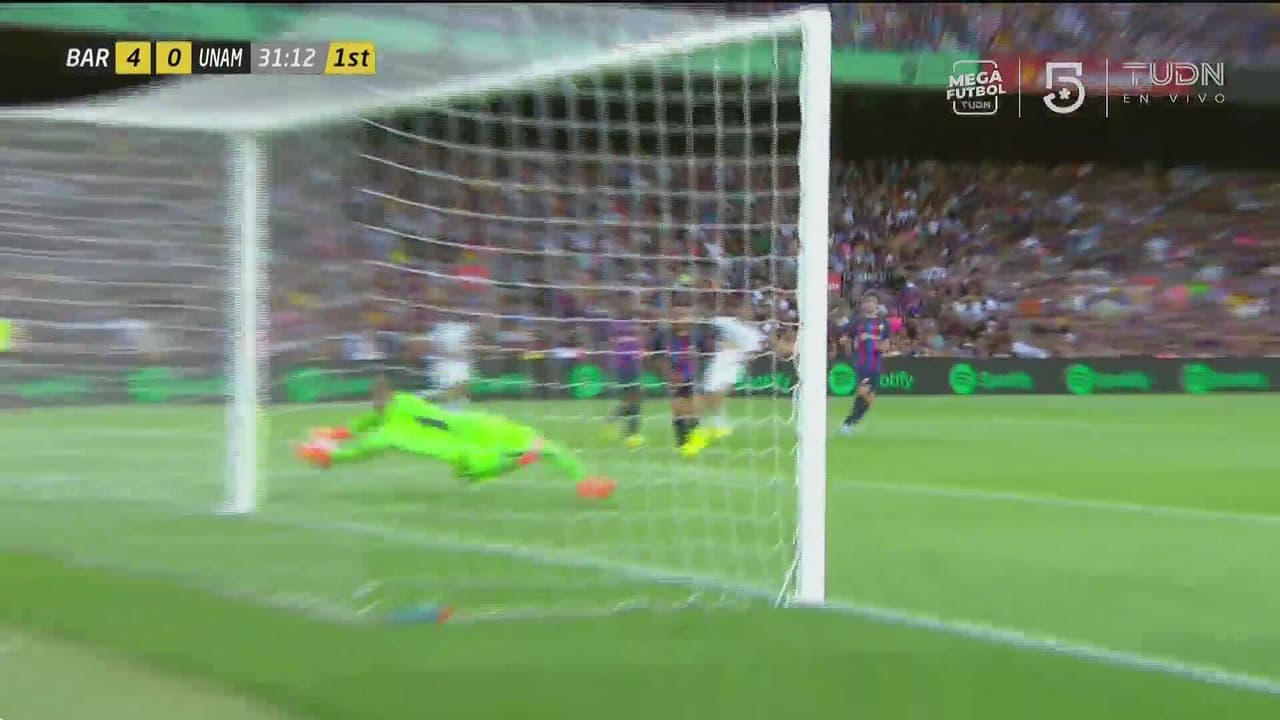 Del Prete le roba el balón a Araújo y el ‘Toto’ sacó riflazo que atajó Ter Stegen al 31’.