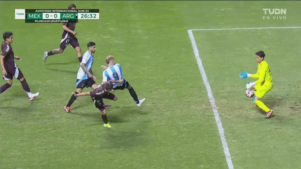 Gran pase de Varela que no pudo aprovechar el delantero argentino por el buen achique de Fernando.