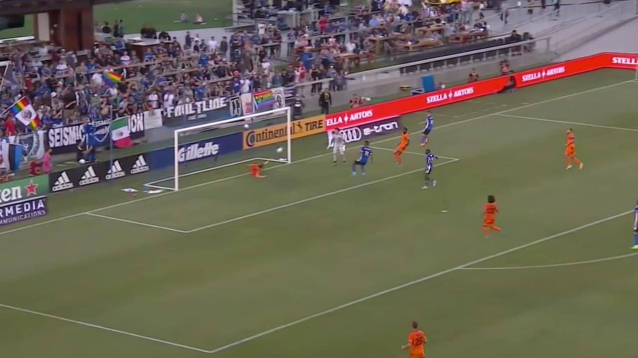 El volante mexicano perdió la pelota en una salida de forma increíble y se quedó a centímetros de ser gol de SJ Earthquakes.
