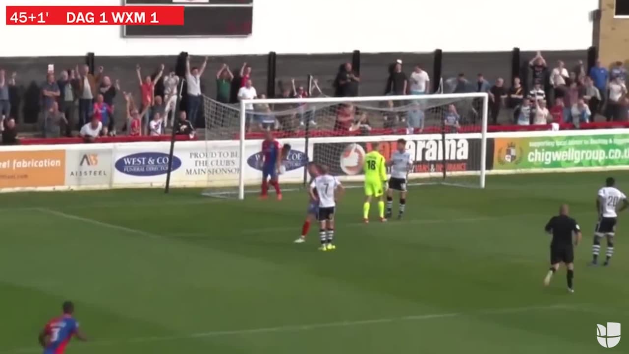 La jugada se dio este fin de semana en un partido entre el Dagenham & Redbridge y el Wrexham, por la cuarta división del fútbol inglés.