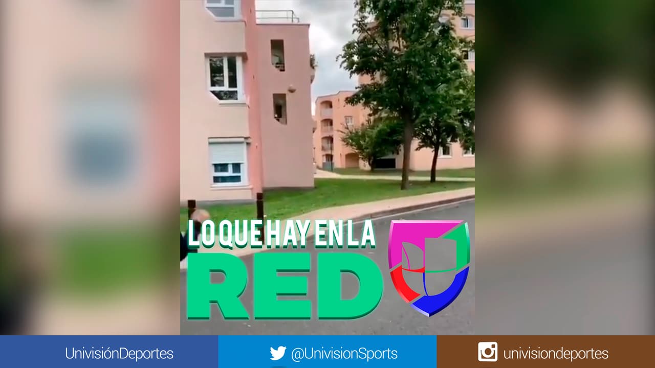 Muestra de precisión y calidad fue la que exhibió este joven al rematar la pelota y hacerla pasar por una de las ventanas de un edificio.