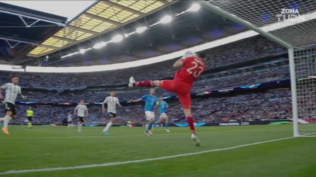 Raspadori centró al área y Andrea se anticipó a los centrales para rematar con la testa, pero Martínez contuvo.