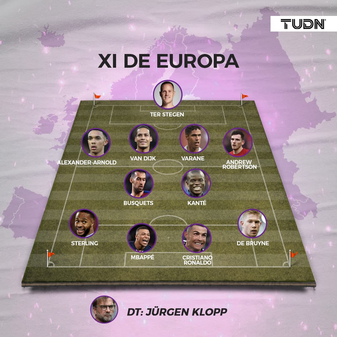 Del lado de Europa la alineación conjuntaría varias nacionalidades con representantes de Alemania, Inglaterra, Holanda, Francia, España, Bélgica y Portugal, comandados por Cristiano Ronaldo y Kylian Mbappé.