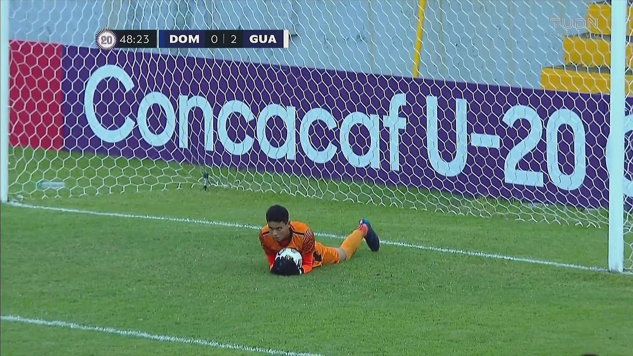 El jugador de República Dominicana probó suerte de media distancia que acabó en las manos de Aguirre al 49’.