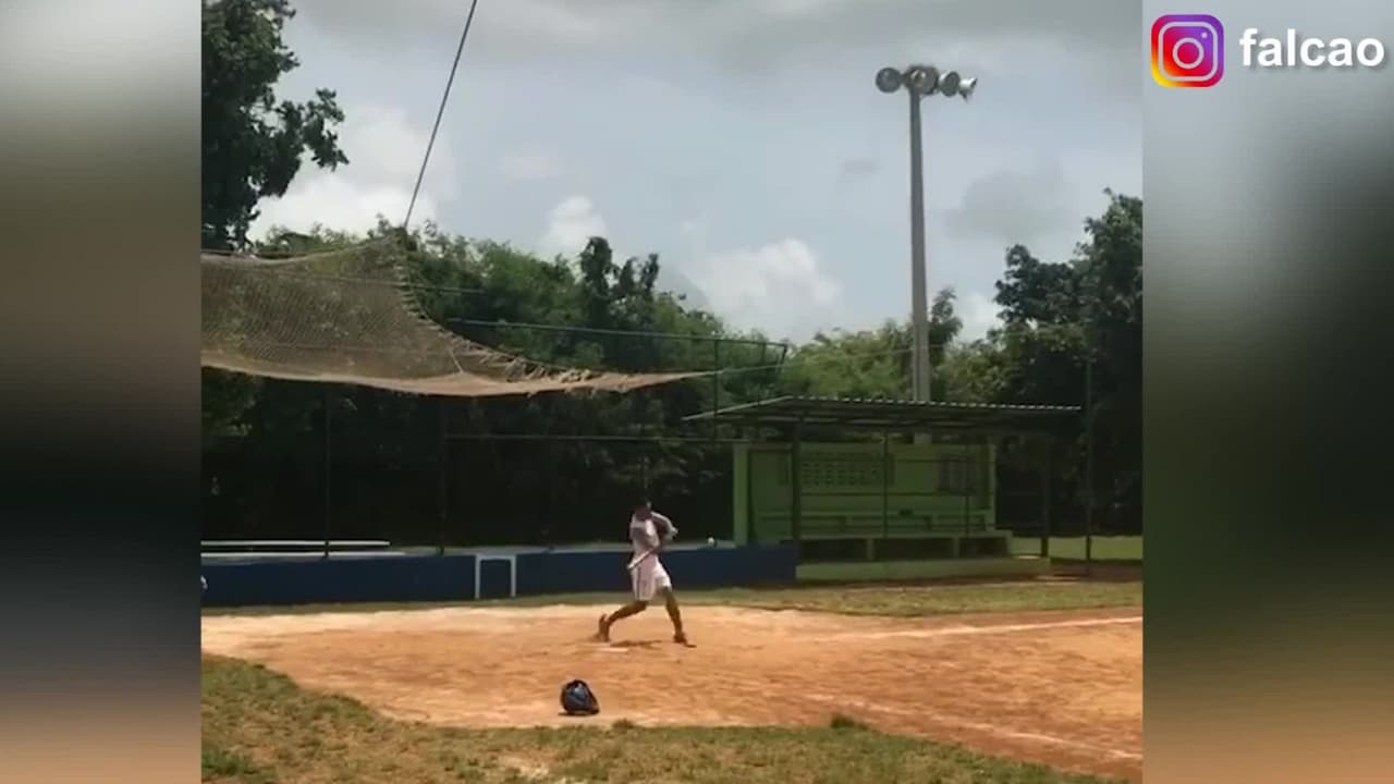 Radamel Falcao se luce en el béisbol y confiesa que le gustaría jugar en Miami