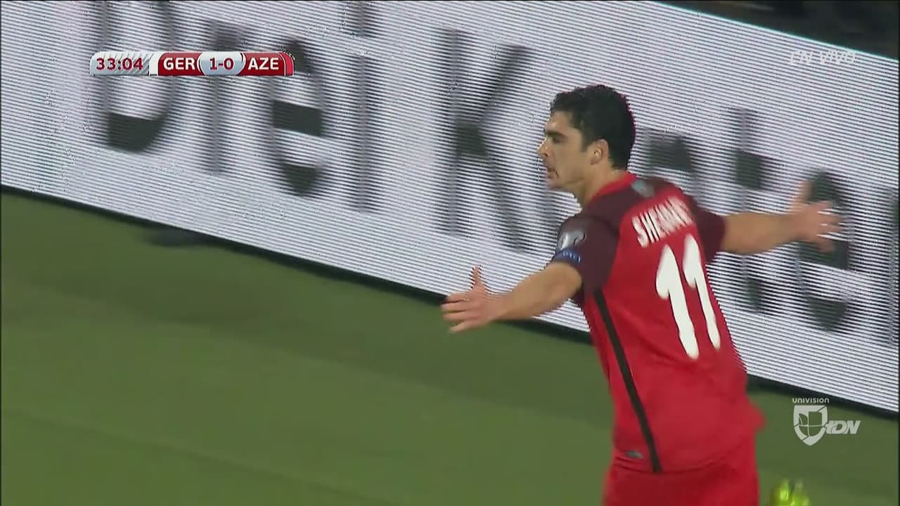 El delantero de Azerbaiyán hizo una doble finta para acabar con un disparo a primer poste que atajó mal el arquero germano para la sorpresa.
