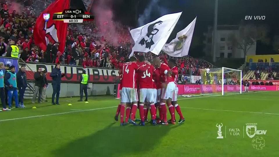 La visita del líder Benfica a Estoril parecía complicarse cuando ya entrados en la segunda mitad los lisboetas aún no eran capaces de romper el 0-0 ante los locales.