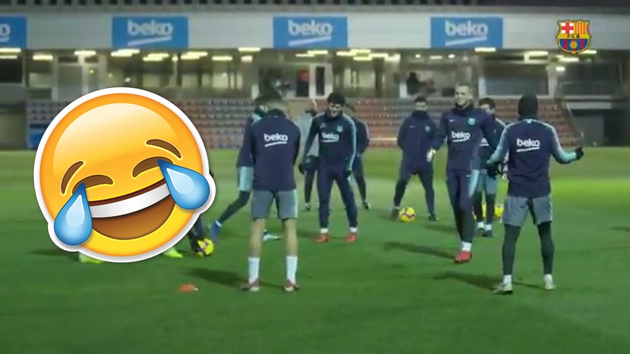Video Así empezó el 2019 para Messi: Tremendo caño a un compañero que desató la burla del equipo