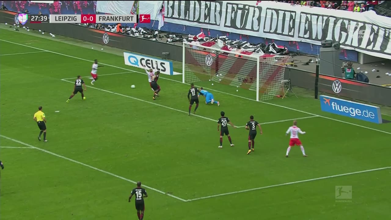 El Leipzing logró abrir el marcador gracias a un error del arquero del Eintracht quien dejó vivo el balón tras el tiro de Werner, Augustin definió sin marca y sin portero.