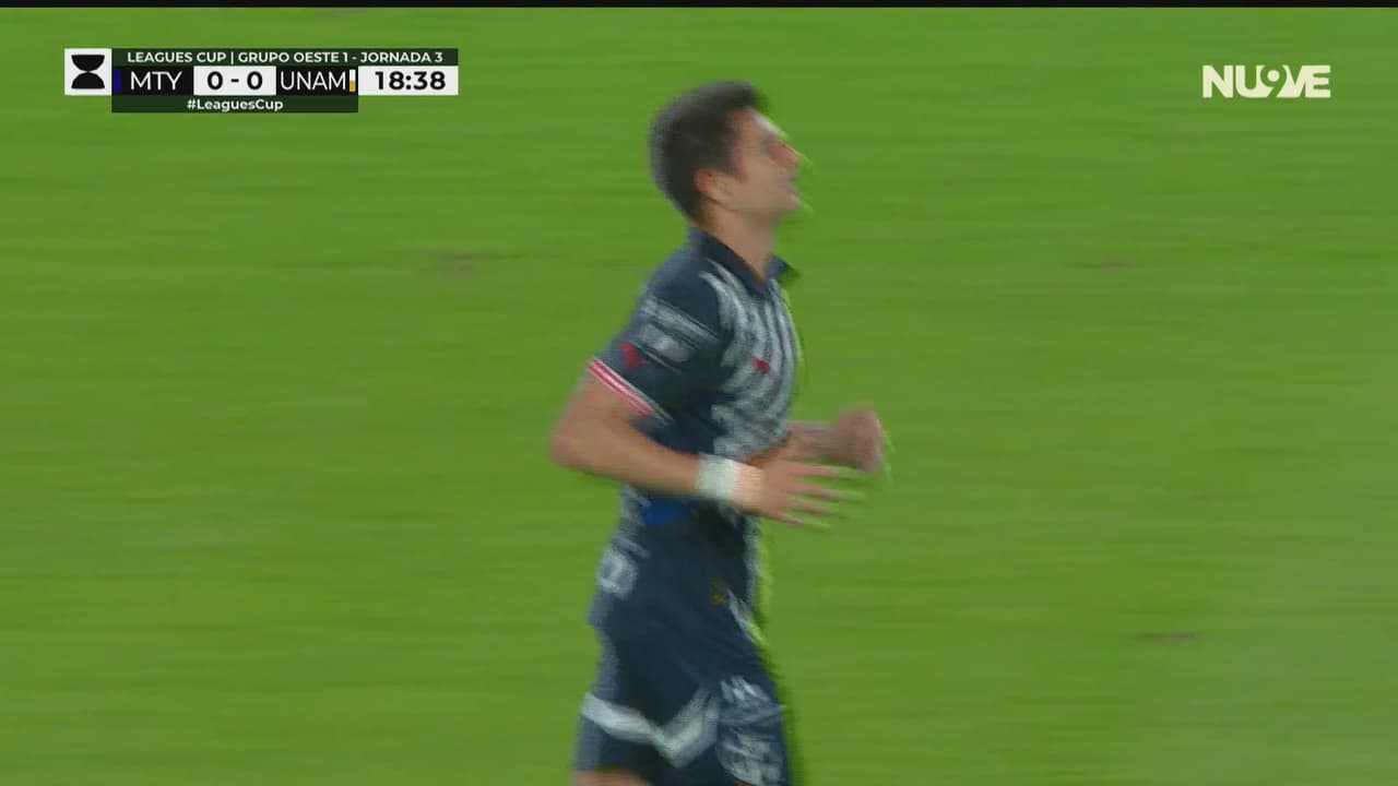 ¡Remate por encima de Medina! El contacto lo hace con el hombro