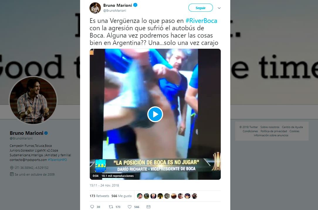 Nuevas imágenes multiplicadas a través de las redes sociales exhiben que la violencia no solamente alcanzó al omnibús de Boca Juniors, sino que se propagó entre gente sin boleto en la proximidad del estadio de River Plate.