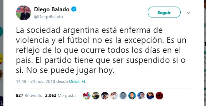 Al tiempo que se hizo oficial el aplazamiento de la final River-Boca para el día domingo, el máximo dirigente de River Plate, Rodolfo D'Onofrio, sostenía una entrevista para la televisión la cual fue interrumpida por una estampida humana.