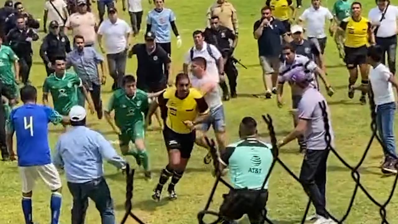 Una decisión que no agradó a los seguidores de unos de los equipos participantes generó que saltaran a la cancha para reclamar de manera airada; sin embargo, varios de ellos reaccionaron de manera violenta.