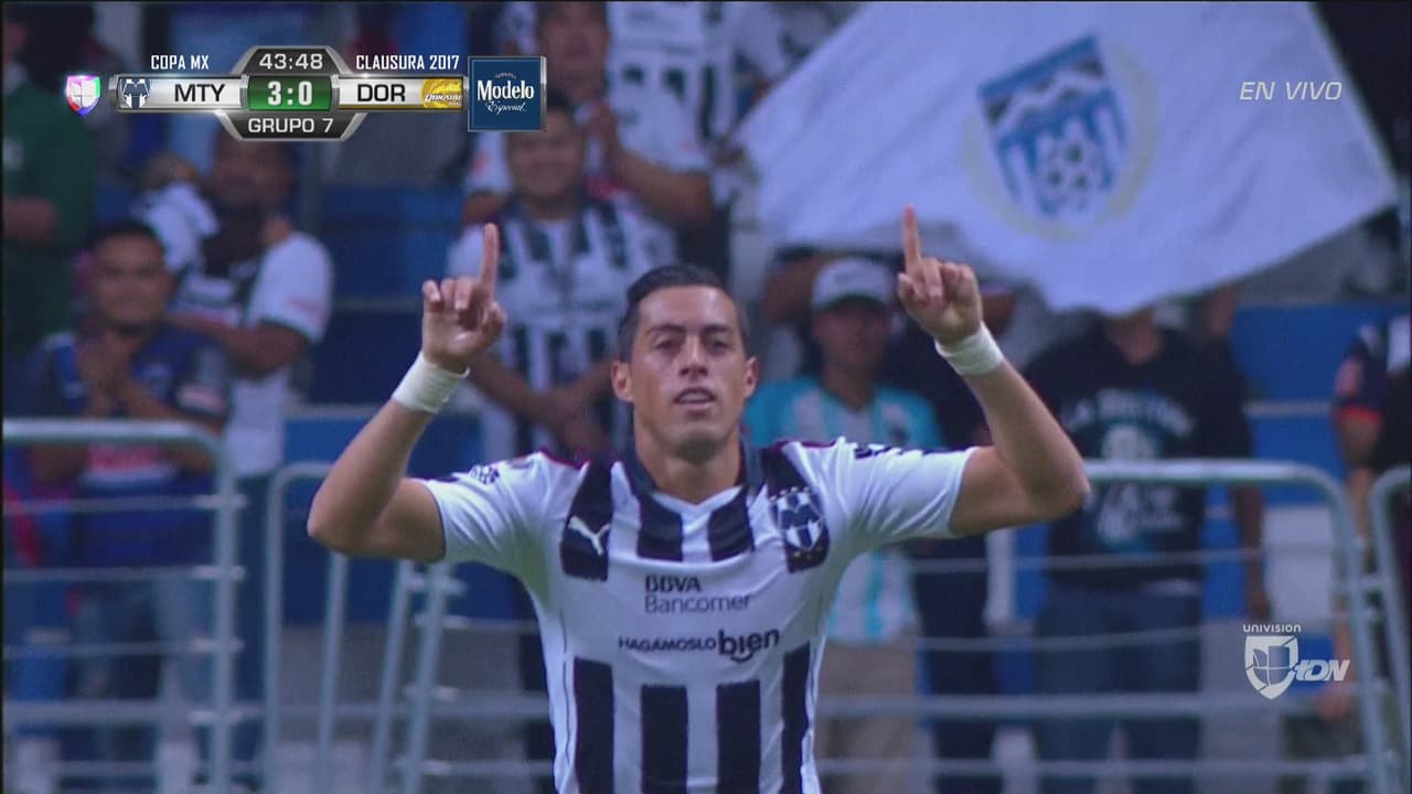 Rogelio Funes Mori aprovecha un error defensivo y anota el tercero de Rayados